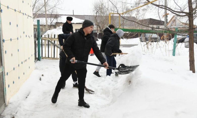 Достық үйінің белсенділері зейнеткерлердің аулаларын қардан тазартты