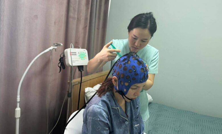 «Электроэнцефалография – инвазивті емес, ауыртпалықсыз диагностикалық әдіс. Зерттеу кезінде бастың тері қабатына арнайы электродтар қойылып, ми нейрондарының белсенділігі тіркеледі. Бұл аппараттың басты артықшылығы – ұйқы бұзылыстары, эпилепсия, операциядан кейінгі және жарақат салдарлары, ми ісіктері мен қабыну процестері сияқты түрлі патологияларды анықтауға мүмкіндік беруі», – деді емхананың дәрігер-невропатологы Гүлбаршын Садуова.