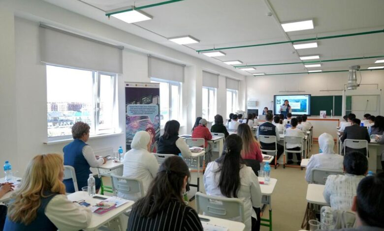 Алдымен оқушыларға вирустардың не екені және олардың қалай таралатыны түсіндірілді, кейін цифрлық платформа көрсетіліп, сынып тәжірибелік бөлімге өтті.