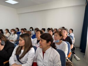 Емхана директоры Рүстем Айтбаев спикерлерге алғыс айтып, медицина мен білім саласы қай кезде болмасын елдің мәдени күші екенін алға тартты. Сондықтан әріптестері алдағы саяси науқанда еліміздің ертеңі үшін белсенді болып, таңдау жасауы маңызды екенін жеткізді. Емхана қызметкерлері кейбір баптарға қатысты сұрақтарын қойып, ой-пікірлерін ортаға салды.
