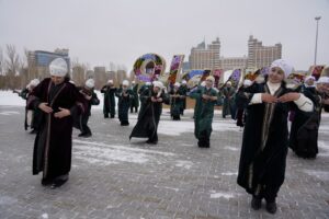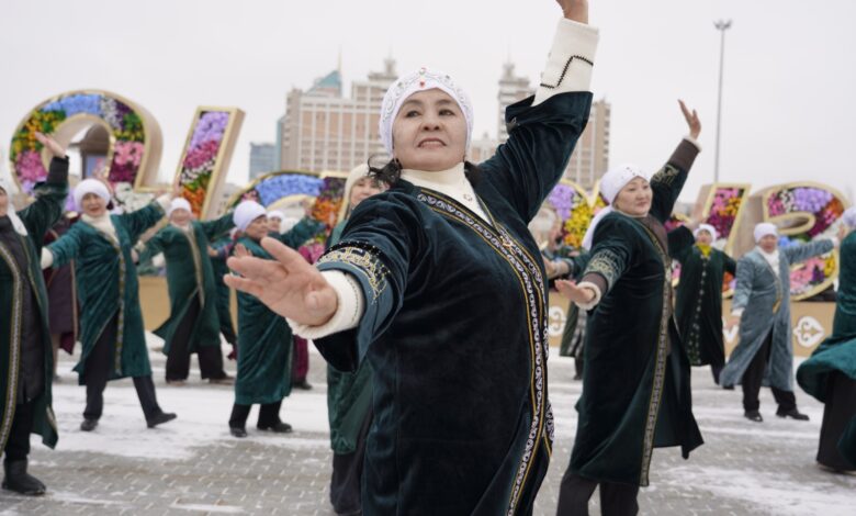 Астана қаласы Нұра ауданының Белсенді ұзақ өмір сүру орталығының «Қыздарай» халық ансамблінің қатысушылары «Қош келдің, әз-Наурыз!» атты мерекелік флеш-моб өткізді, деп хабарлайды astana-akshamy.kz.