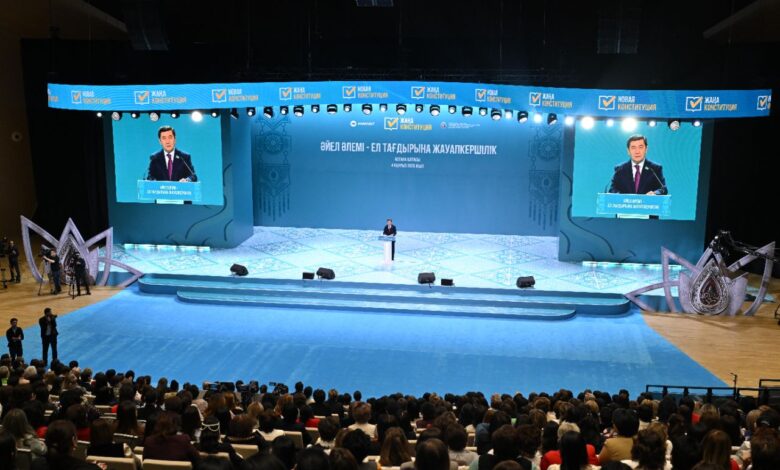 Елордадағы EXPO конгресс-орталығында «Әйел әлемі – ел тағдырына жауапкершілік» ұранымен көшбасшы әйелдердің кездесуі өтті. Іс-шарада Парламент Мәжілісінің Төрағасы Ерлан Қошанов және Премьер-Министрдің орынбасары – Мәдениет және ақпарат министрі Аида Балаева сөз сөйледі. Залда Қазақстанның барлық өңірінен келген мыңға жуық көшбасшы әйел – білім беру, денсаулық сақтау, кәсіпкерлік, ғылым, әлеуметтік салаларының және азаматтық сектордың өкілдері жиналды. Іс-шара аясында жаңа Конституцияны қабылдау бойынша 15 наурызда өтетін референдум талқыланды, деп хабарлайды astana-akshamy.kz.